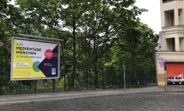 Auch in der Hauptstadt muss bekannt gemacht werden, dass es demnächst wieder ein Veranstaltungs-Highlight der Münchner Medienbranche gibt. Irgendwo im Berliner nirgendwo, also sprich im Berliner Umland, entdeckte ein „Clap“-Reporter erstaunt das Plakat mit dem neuen Medientage-Motiv. Ob die Zielgruppe es dort entdeckt? Das lässt sich schwer sagen. Womöglich wohnt dort in der Pampa unbekannter Weise ein wichtiger Medienmanager, der besondere Ansprache benötigt.